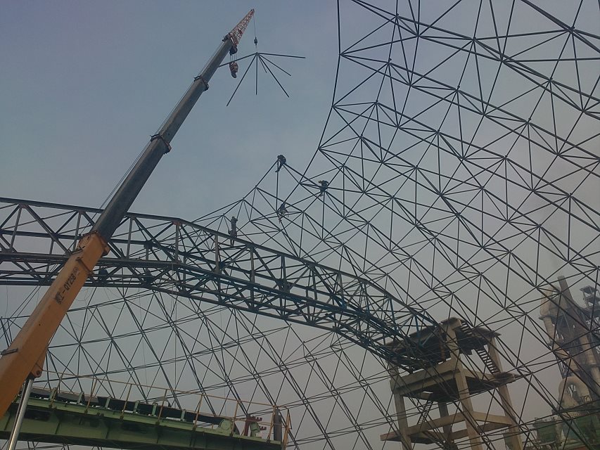 球形網架拼裝的鋼材與連接材料、高強度螺栓、焊條等材料應符合設計要求,并應有出場合格證明。   一、螺栓球、空心焊接球、加助焊接球、錐頭、套筒、封板、網架桿件、焊接鋼板…